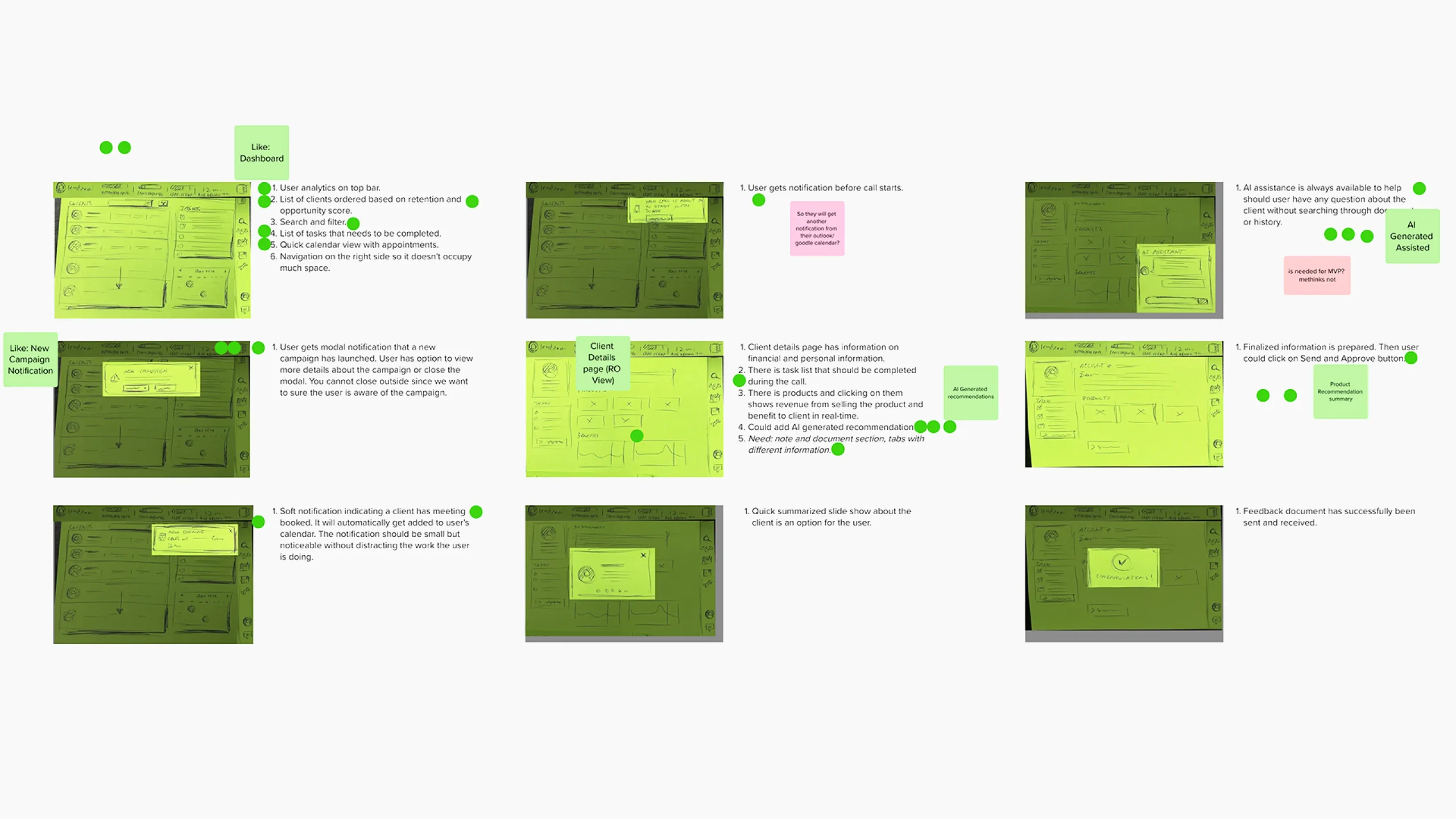 Using Google’s Design Sprint method, the Venture team and I ran a Crazy 8s sketching session to rapidly explore ideas. We defined each screen’s purpose using sticky notes, created modal effects in Figma to enhance clarity, and used Mural to vote on preferred concepts.