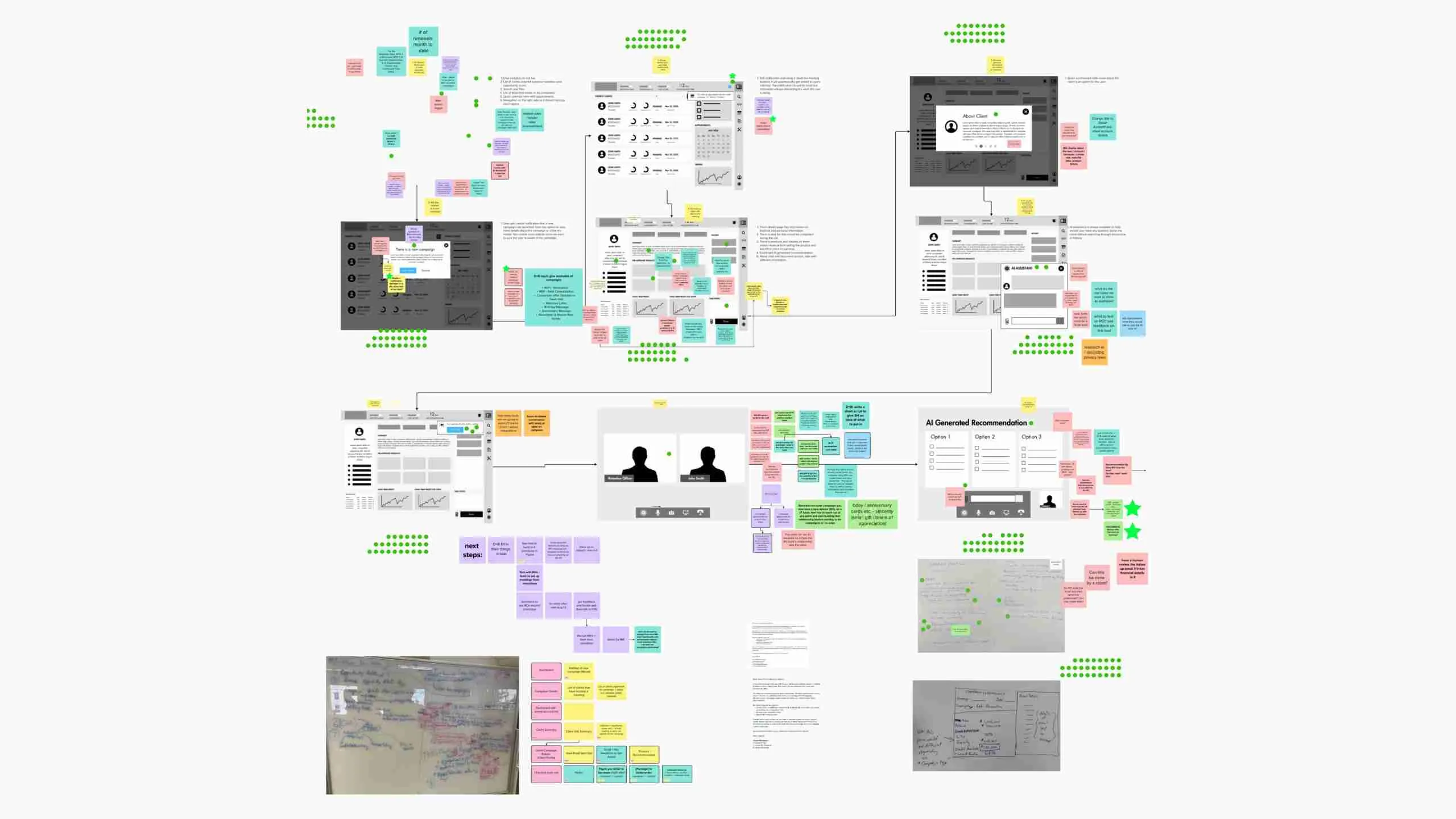 After finalizing the designs, I uploaded them to Mural for client approval of the user flow. Over time, the prototype expanded to three complete flows for most likely scenarios, which were later used for user testing and investor presentations.