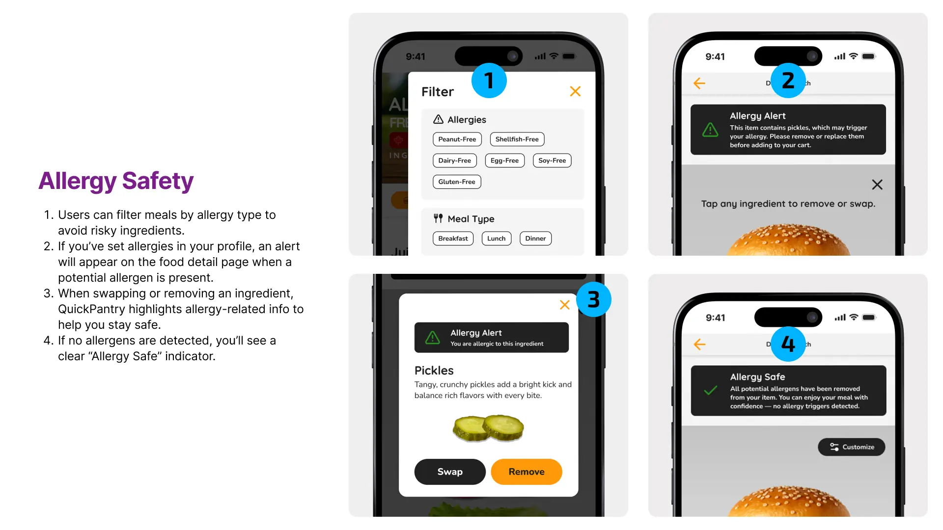 When swapping or removing an ingredient, QuickPantry highlights allergy-related info to help you stay safe.