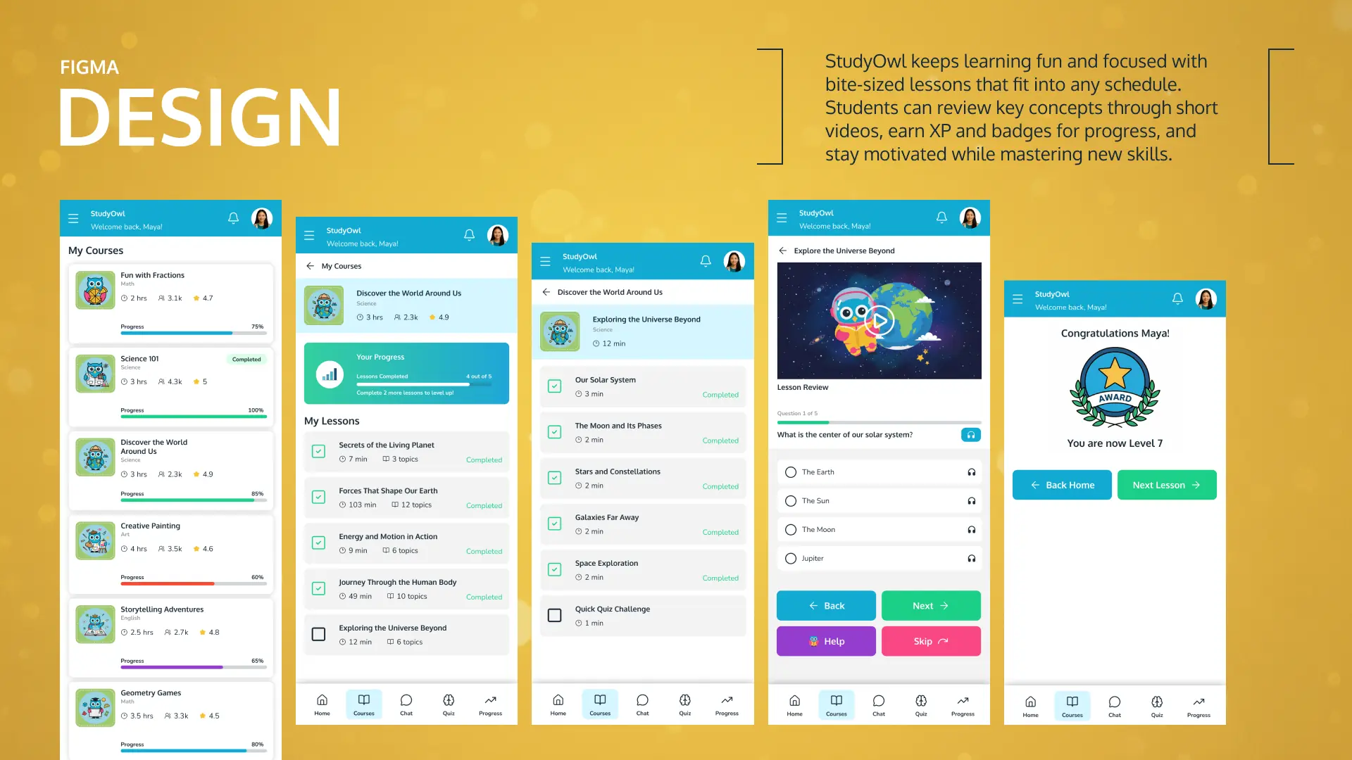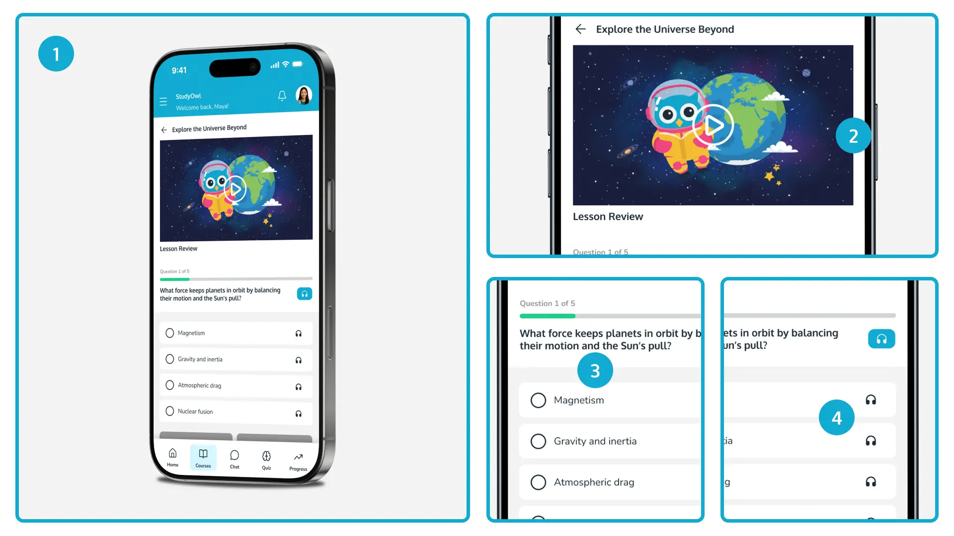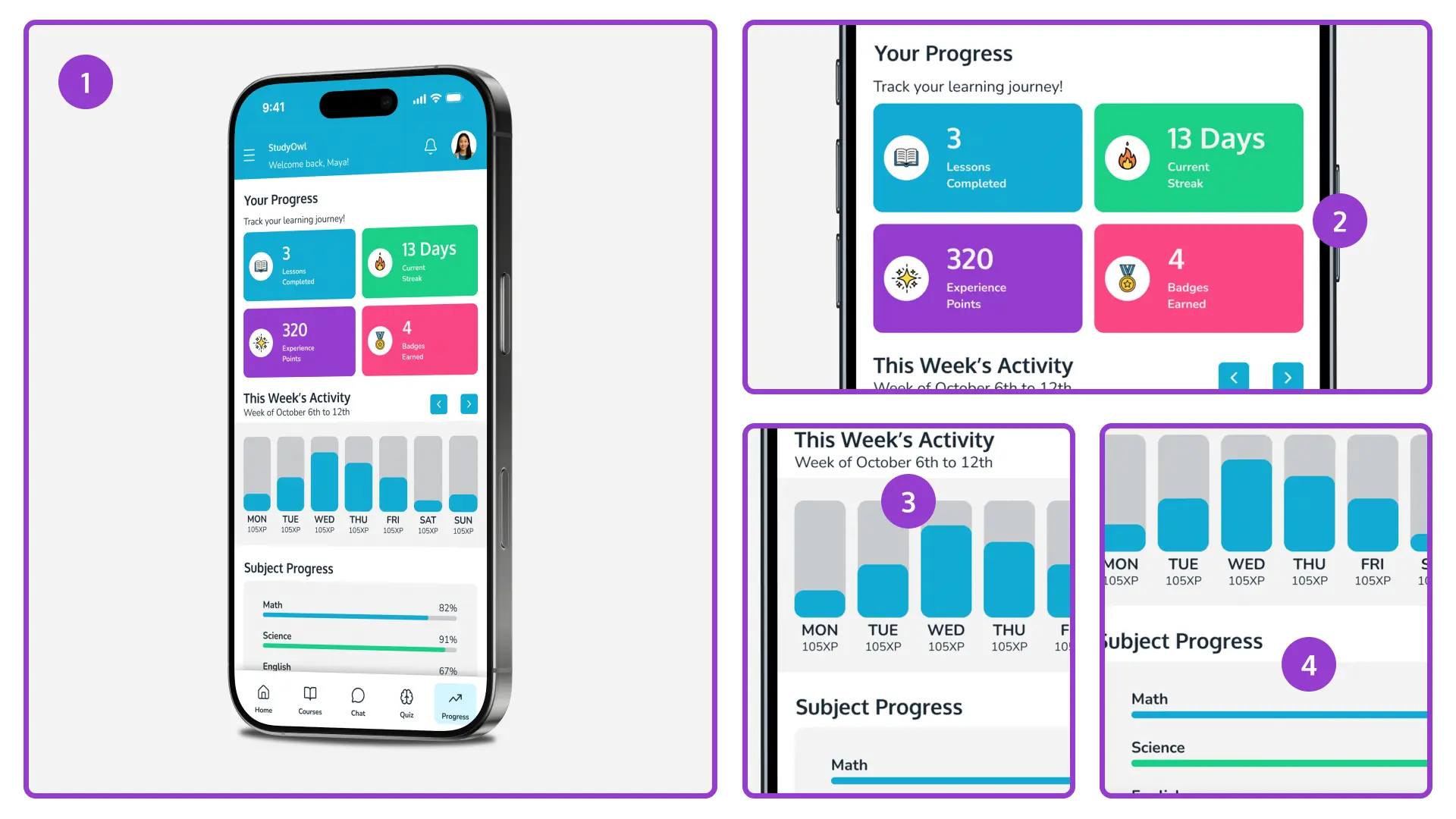 StudyOwl keeps learning fun and focused with bite-sized lessons that fit into any schedule. Students can review key concepts through short videos, earn XP and badges for progress, and stay motivated while mastering new skills.