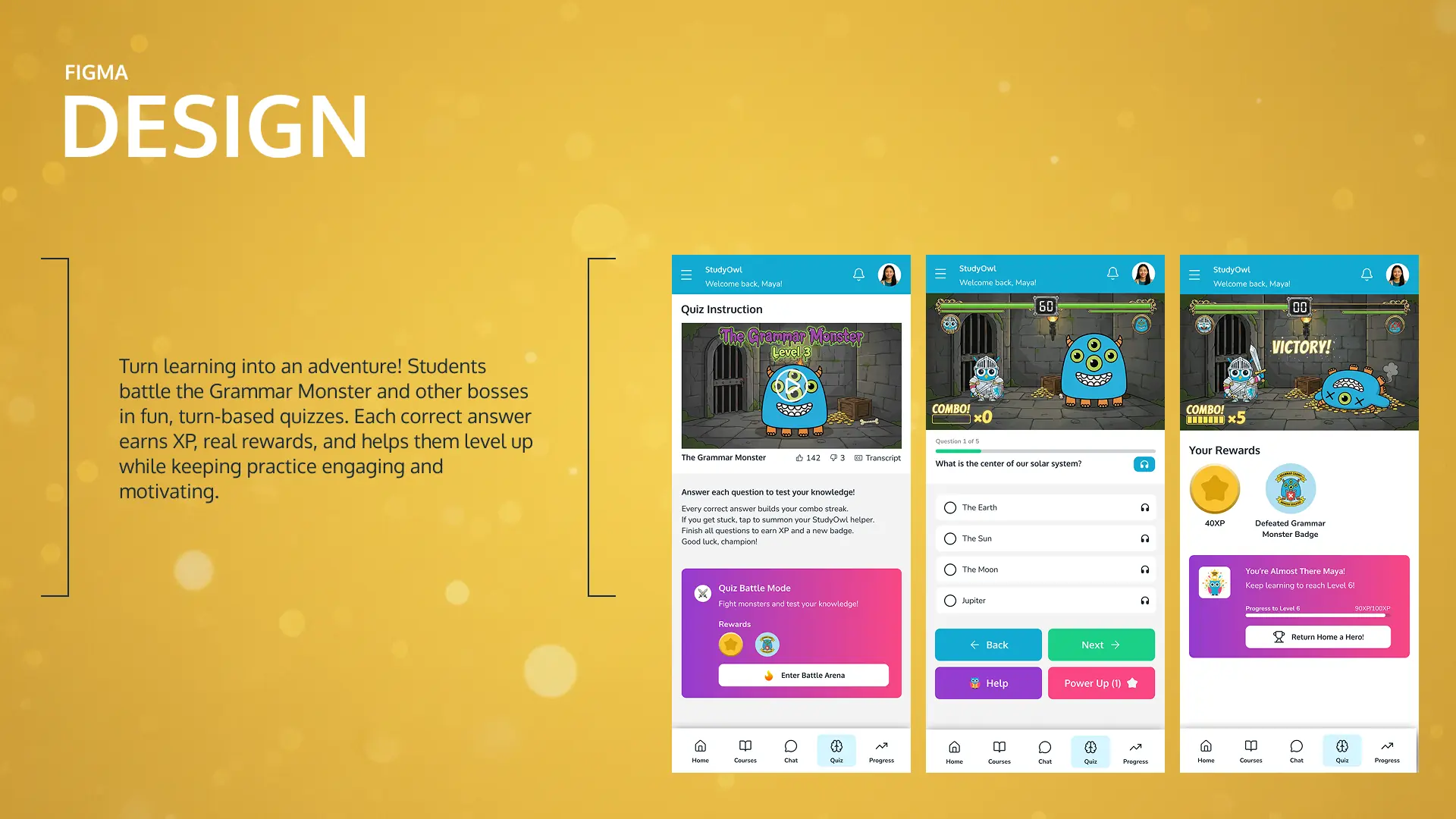 Turn learning into an adventure! Students battle the Grammar Monster and other bosses in fun, turn-based quizzes. Each correct answer earns XP, real rewards, and helps them level up while keeping practice engaging and motivating.